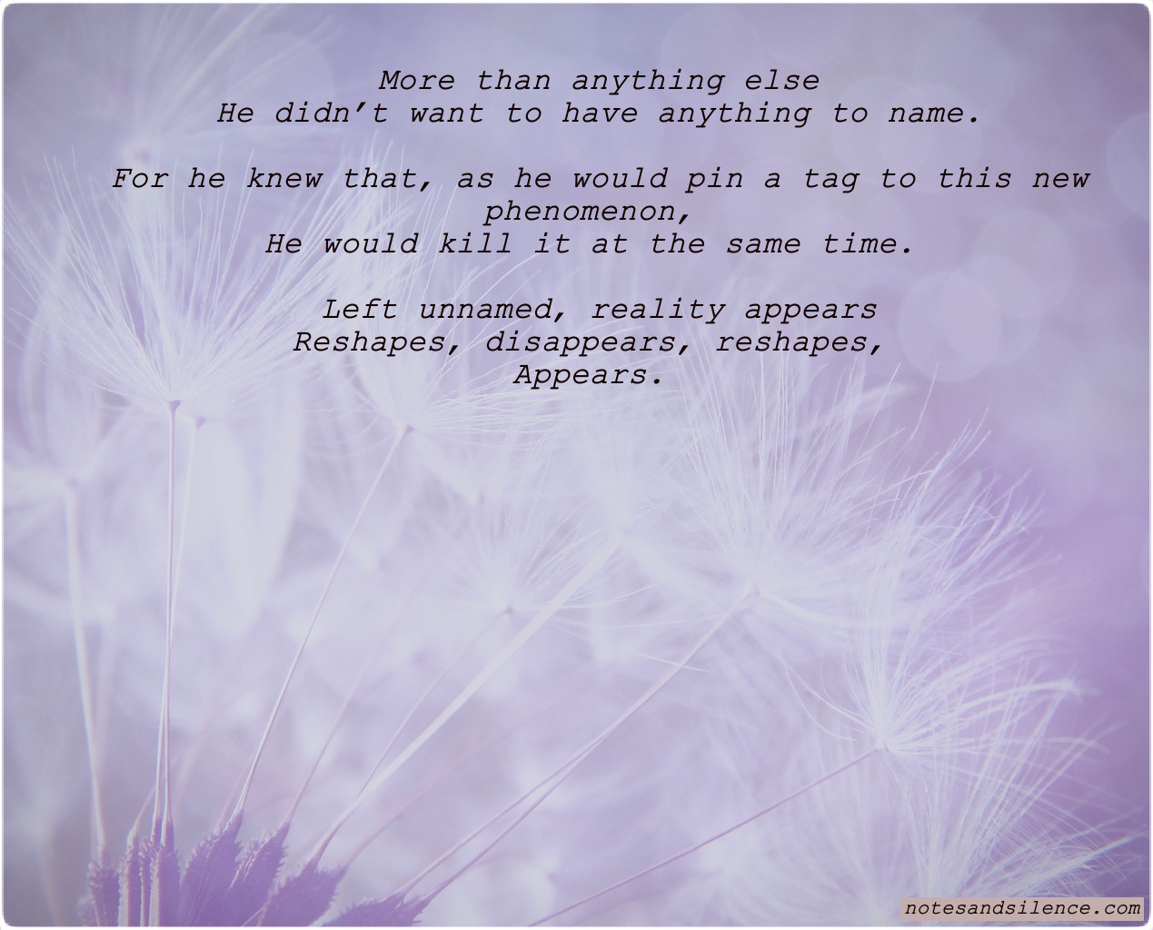 Left unnamed, reality appears