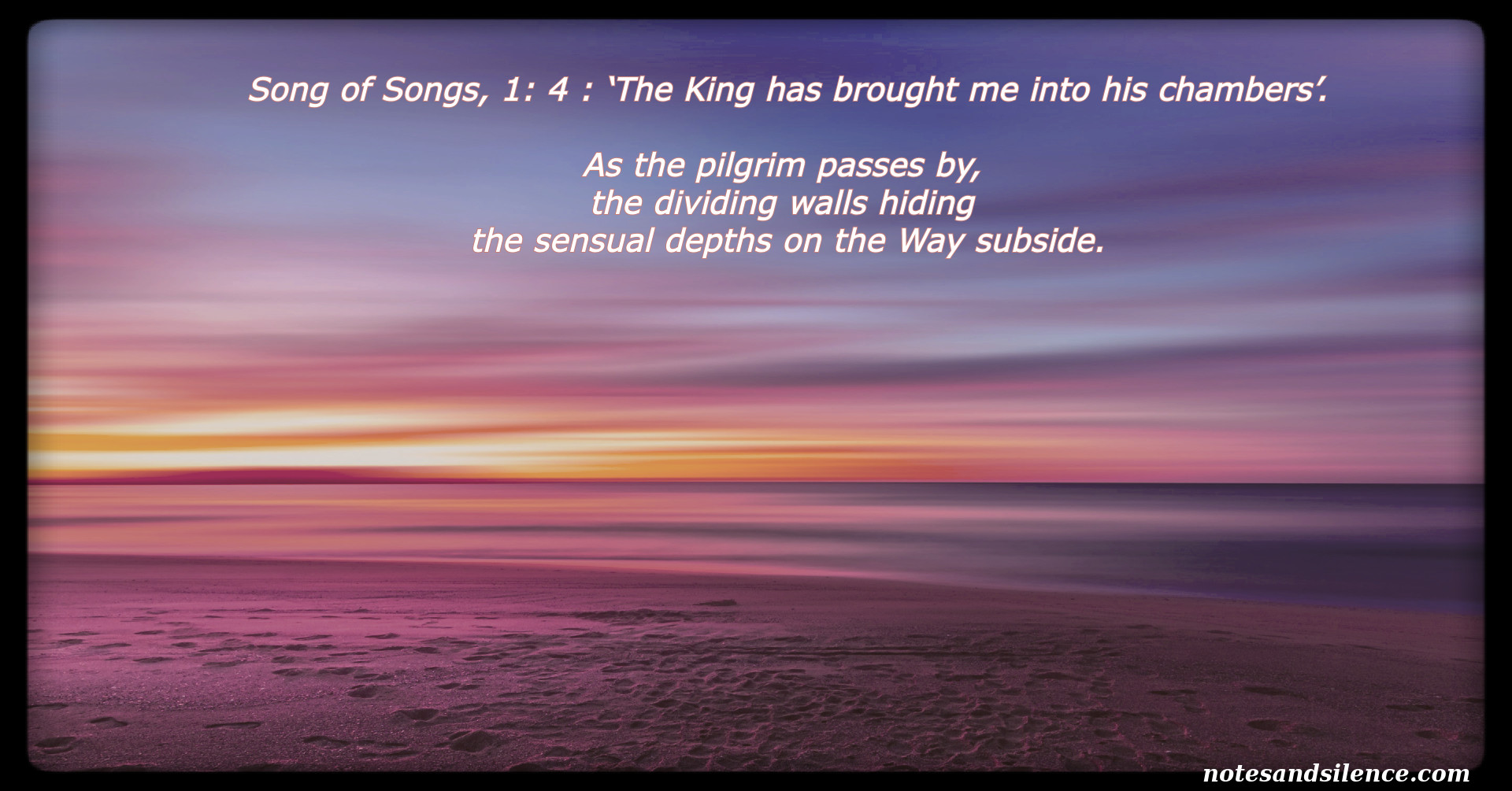 As the pilgrim passes by, the dividing walls hiding the sensual depths of the Way
