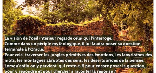 « La vision de l’œil intérieur regarde celui qui l’interroge. Comme dans un périple mythologique, il lui faudra poser sa question terminale à l’Oracle. Pour cela,
