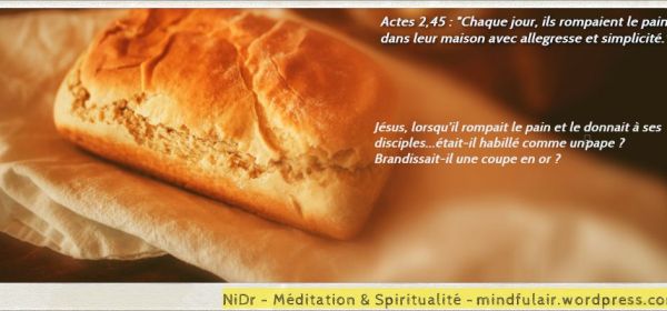 Actes 2,45 : « Chaque jour, ils rompaient le pain dans leur maison avec allegresse et simplicité. » Jésus, lorsqu’il rompait le pain et le