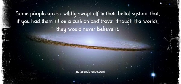 Some people are so wildly swept off in their belief system that, if you had them sit on a cushion and travel through the worlds,