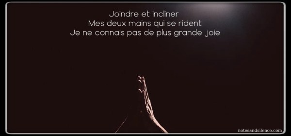 Joindre et incliner Mes deux mains qui se ridentJe ne connais pas de plus grande joie ©FJ Nov 2021RECUEILS/ ParticipationsTelegram (Publications et Pratique)